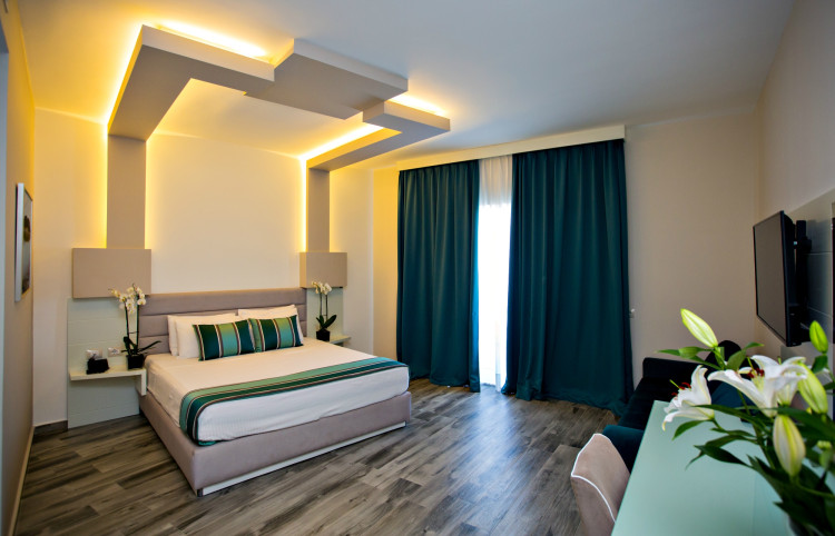 Perfectly positioned and conceived to embody luxury, our Deluxe Room offers the maximum a hotel room can offer. Combining contemporary style with coziness and sophisticated elegance, this room will make you experience a feeling you would always long to repeat. With light, relaxing colors, the room offers the feeling of maximum wellbeing. The king-sized bed, and a large comfortable sofa for two children, make the Deluxe Room ideal for your luxurious vacation.